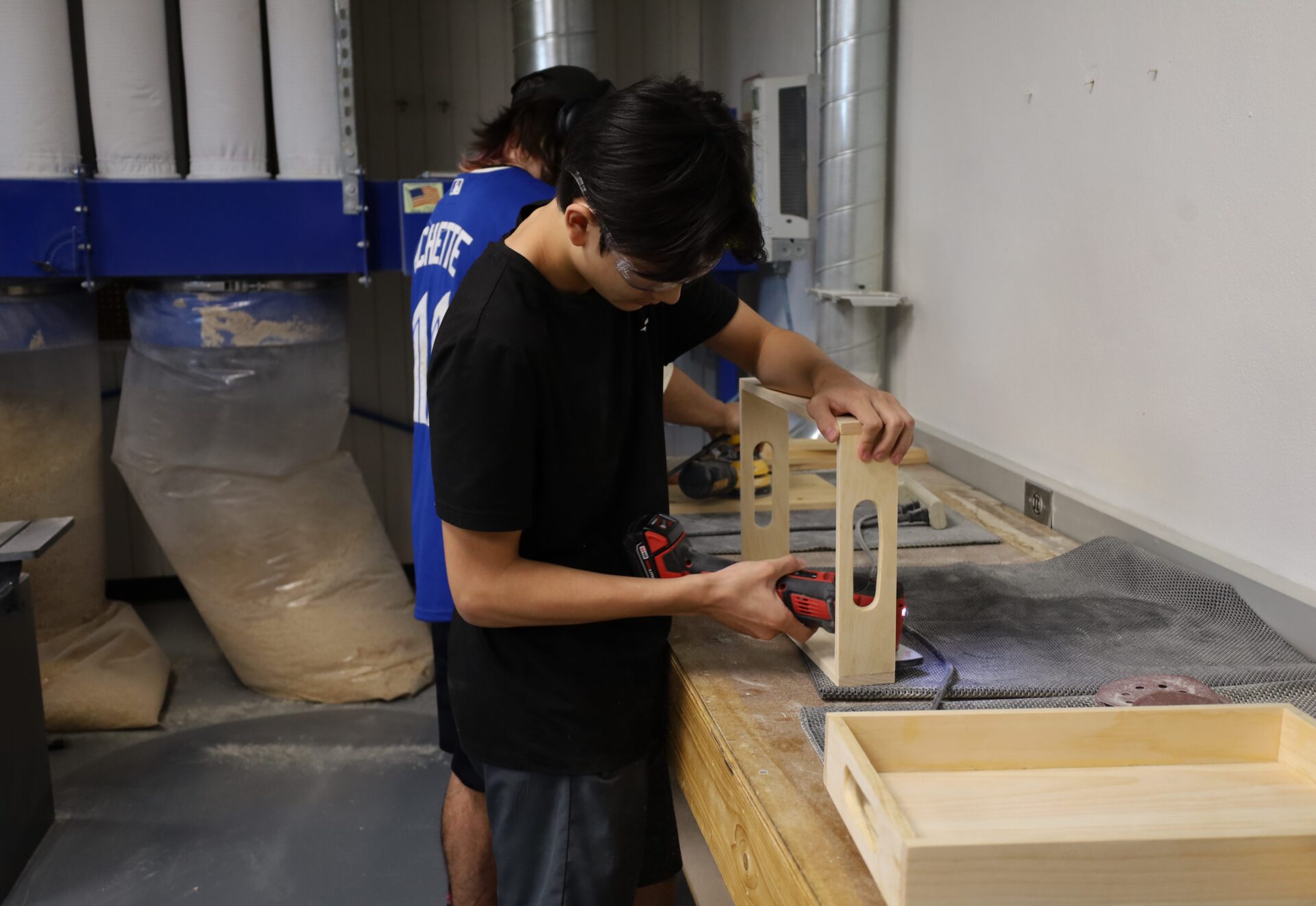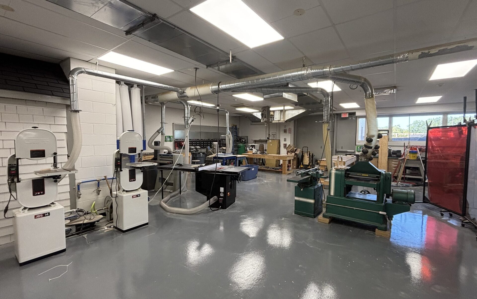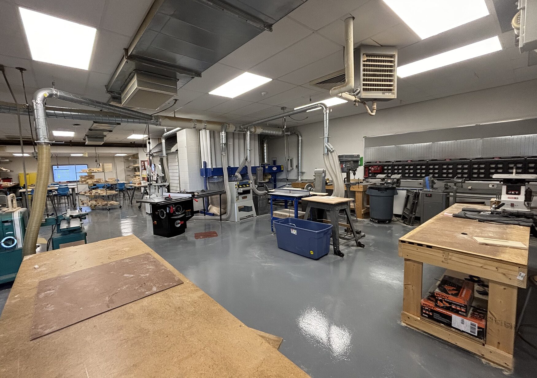 The new equipment includes laser engravers, a miter saw, a table saw, along with cordless handheld tools such as nail guns, sanders and jig saws. In addition, the space was equipped with brand new desks, chairs and storage units, as well as workbenches made by instructor Josh Tang.
