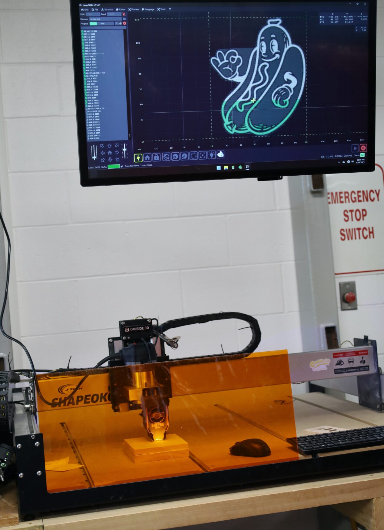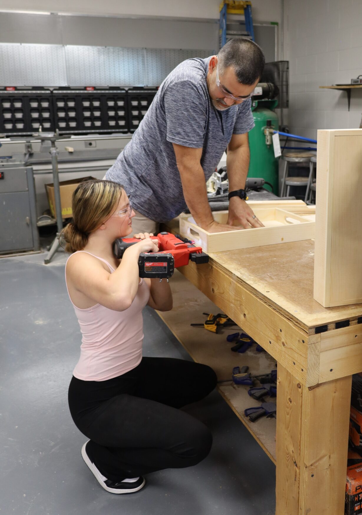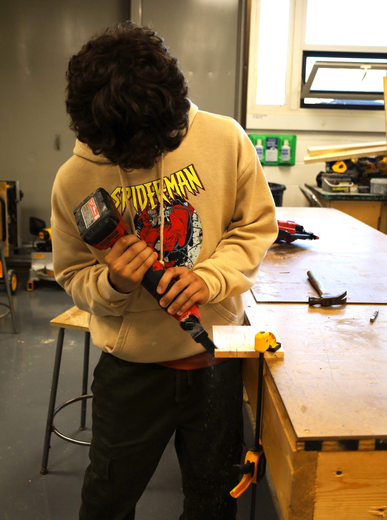 The new equipment includes laser engravers, a miter saw, a table saw, along with cordless handheld tools such as nail guns, sanders and jig saws. In addition, the space was equipped with brand new desks, chairs and storage units, as well as workbenches made by instructor Josh Tang.